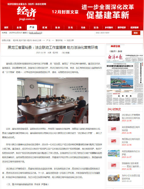 开展“菜单式送法进企”专项行动,聚焦企业生产经营中的合同纠纷、劳动用工、知识产权保护等高频法律需求,走访“黑龙江富鹤热力有限责任公司”“富裕县宝丽珠宝店” 等规上、限上企业17家,通过专题讲座、案例剖析、法律咨询等形式,为企业职工普及法律知识30余场,帮助企业排查经营风险26项,提升风险防范能力。创新设立 “共享法庭”,搭建线上线下融合的纠纷化解平台。召开政商沙龙,倾听企业诉求,精准破解企业发展难题,获得辖区企业的高度认可与一致好评。在优化营商环境破产专班工作中,民二庭凭借专业高效的工作表现,2023年在全市法院排名第六,2024年跃升至第三名,实现争先进位的显著突破。